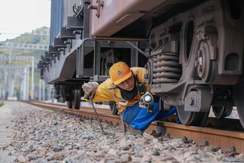 此外,为不断提升车辆检修效率、安全保障能力,铁路部门新建了3套车辆轮温监测设备、1套TADS设备,并接入车辆健康监测大数据网络。中老铁路全线车辆动态监测系统增加至82套,平均每15千米一套,通过综合运用光学、声学、大数据分析等现代化技术,实现对货车车辆、车速、轴承温度、踏面情况等重要技术指标即时监测、反馈分析技术参数,是车辆“健康”监测的“千里眼”和“顺风耳”,为车辆检修提供更加科学的技术信息指导,成为保障货车车辆安全的重要手段。